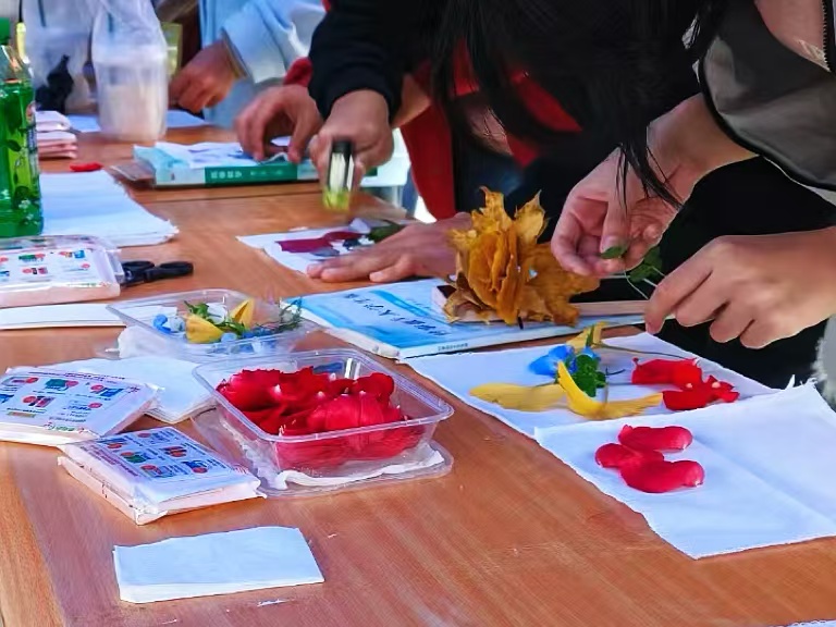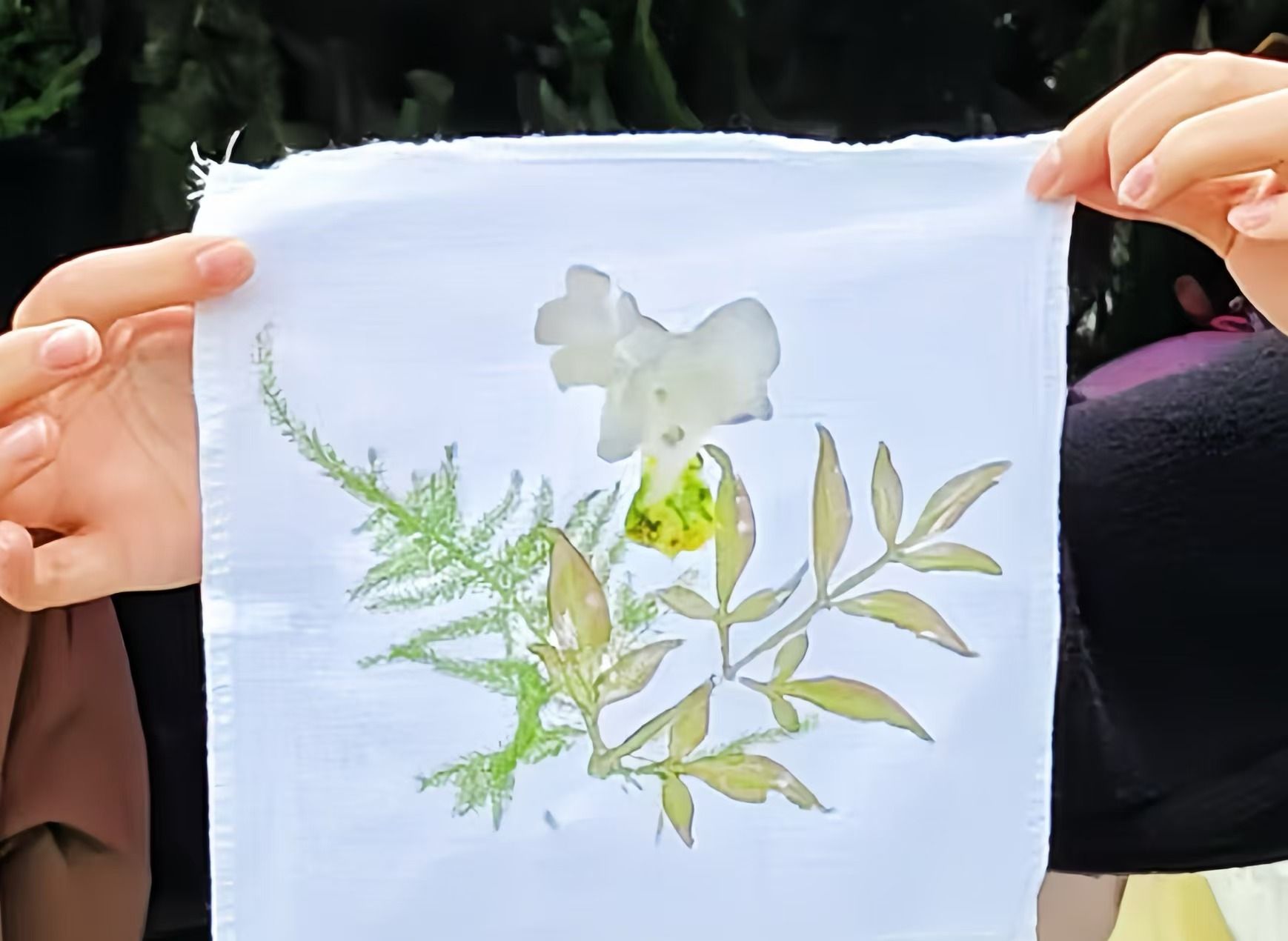 在博苑广场举办“锤草印花 植物拓染”活动。