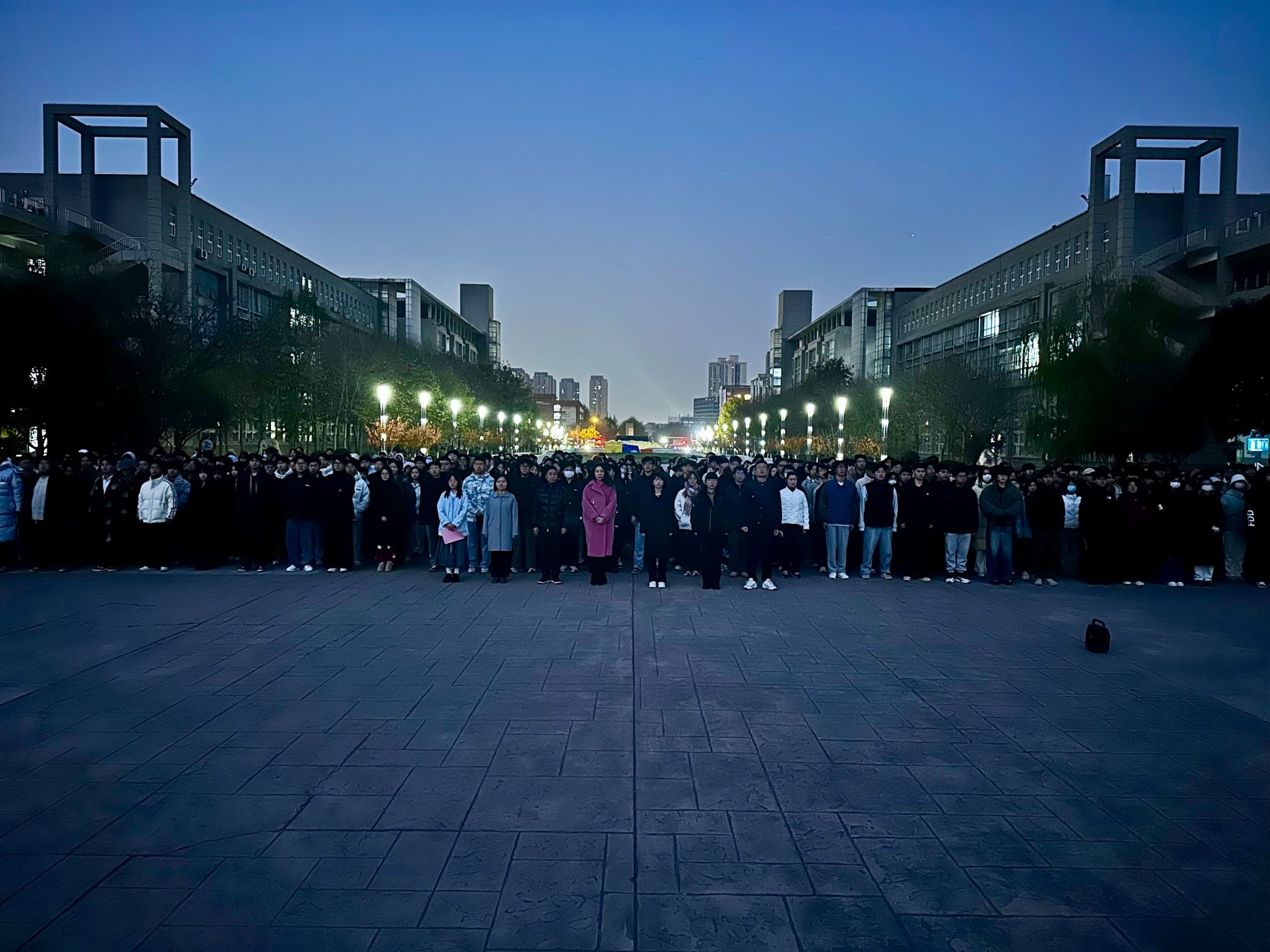 组织全院师生观看升旗仪式,学院党委副书记周倩、学工办全体辅导员参加。