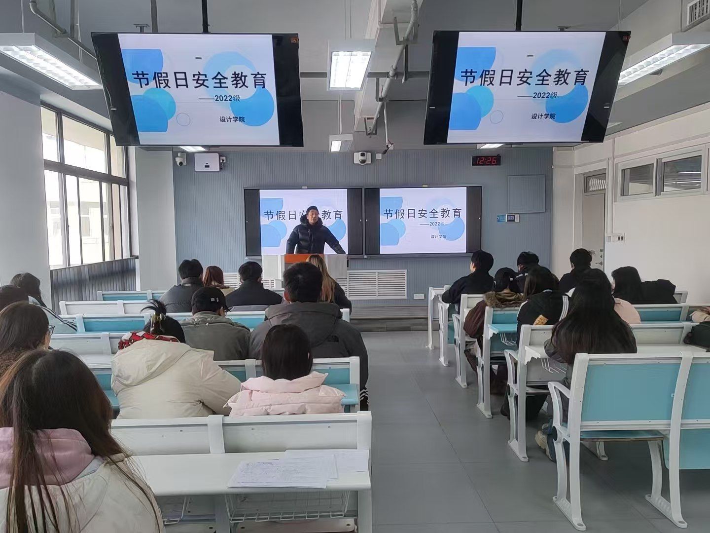 2022级在7-404教室召开节假日安全教育大会,辅导员洪涛主持,2022级全体学生参加。