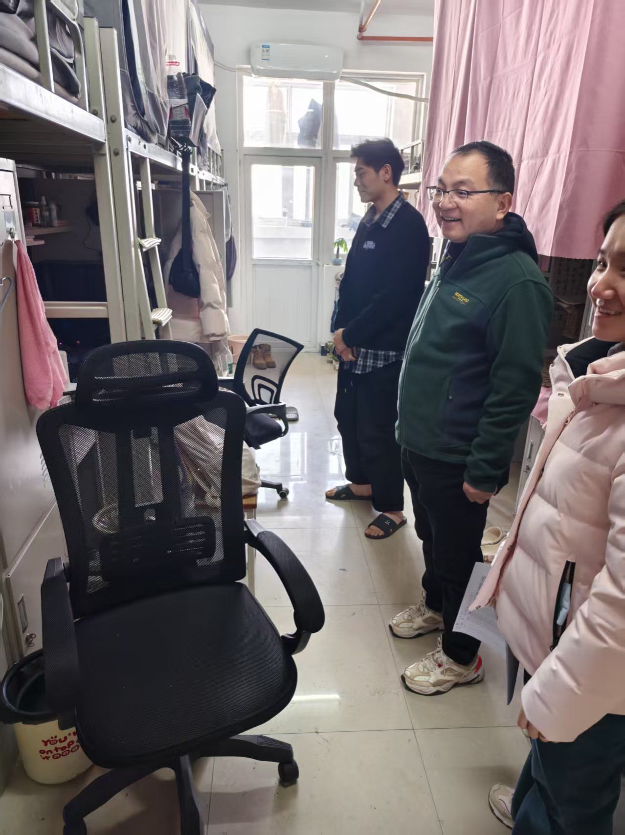 在走访学院研究生过程中,周著详细询问了学生们的假期生活、学习情况以及对新学期的规划与期待,鼓励大家要珍惜时光,不断提升自我,为未来的职业生涯奠定坚实基础。周倩在走访本科生宿舍时,对宿舍环境卫生、设施设备等情况进行了细致的查看,她叮嘱大家要提高安全意识,共同维护宿舍的安全与和谐,合理安排作息时间,以良好的精神状态迎接新学期。