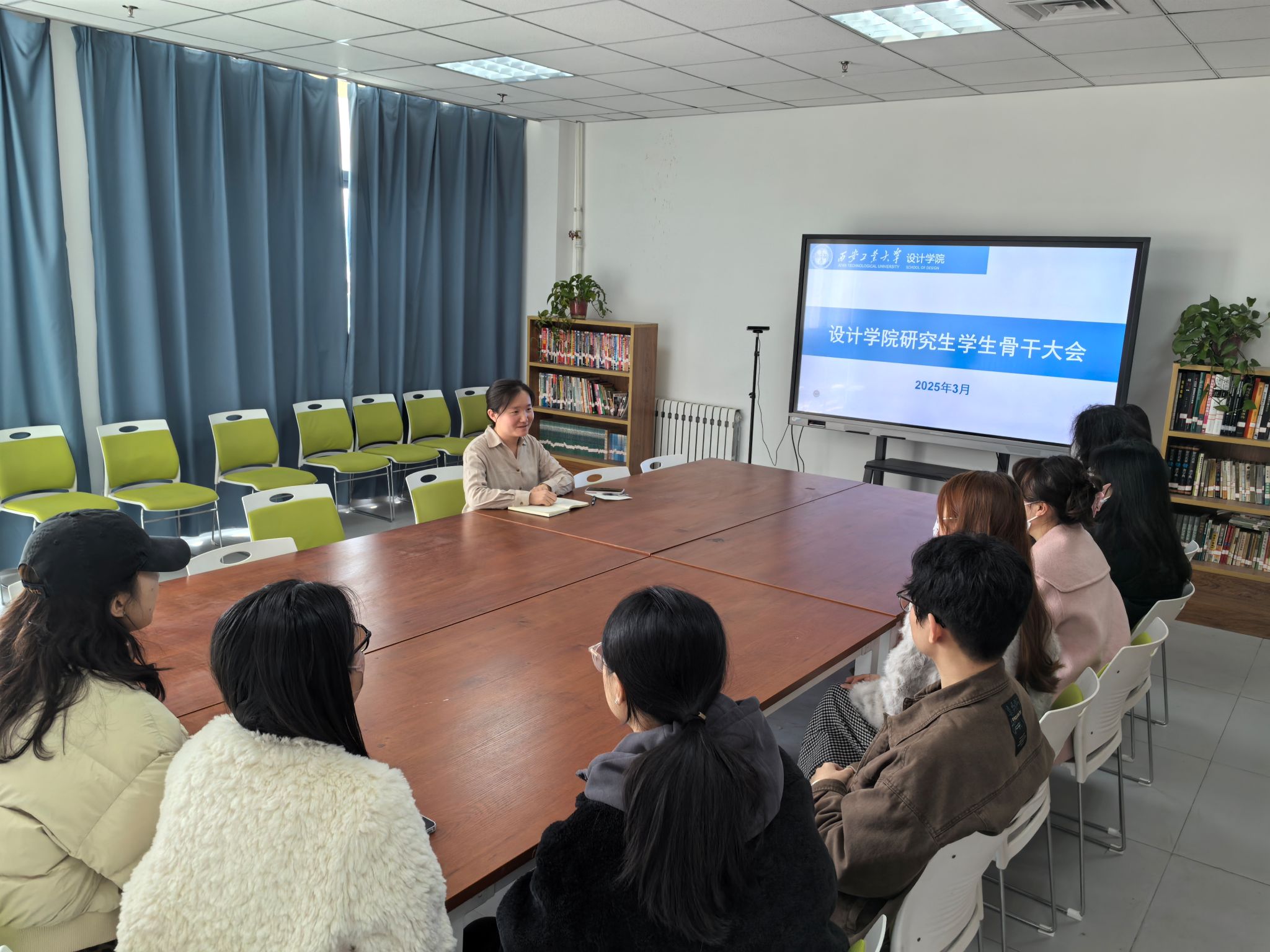 会上,贾宇星就研究生学术沙龙活动进行重点部署,要求骨干成员提前策划并融入学科特色。她强调学生骨干需践行“终身学习”理念,既要提升专业素养,也要强化责任担当,并鼓励大家发挥设计思维优势,积极为校园文化活动建言献策,提升服务效能。