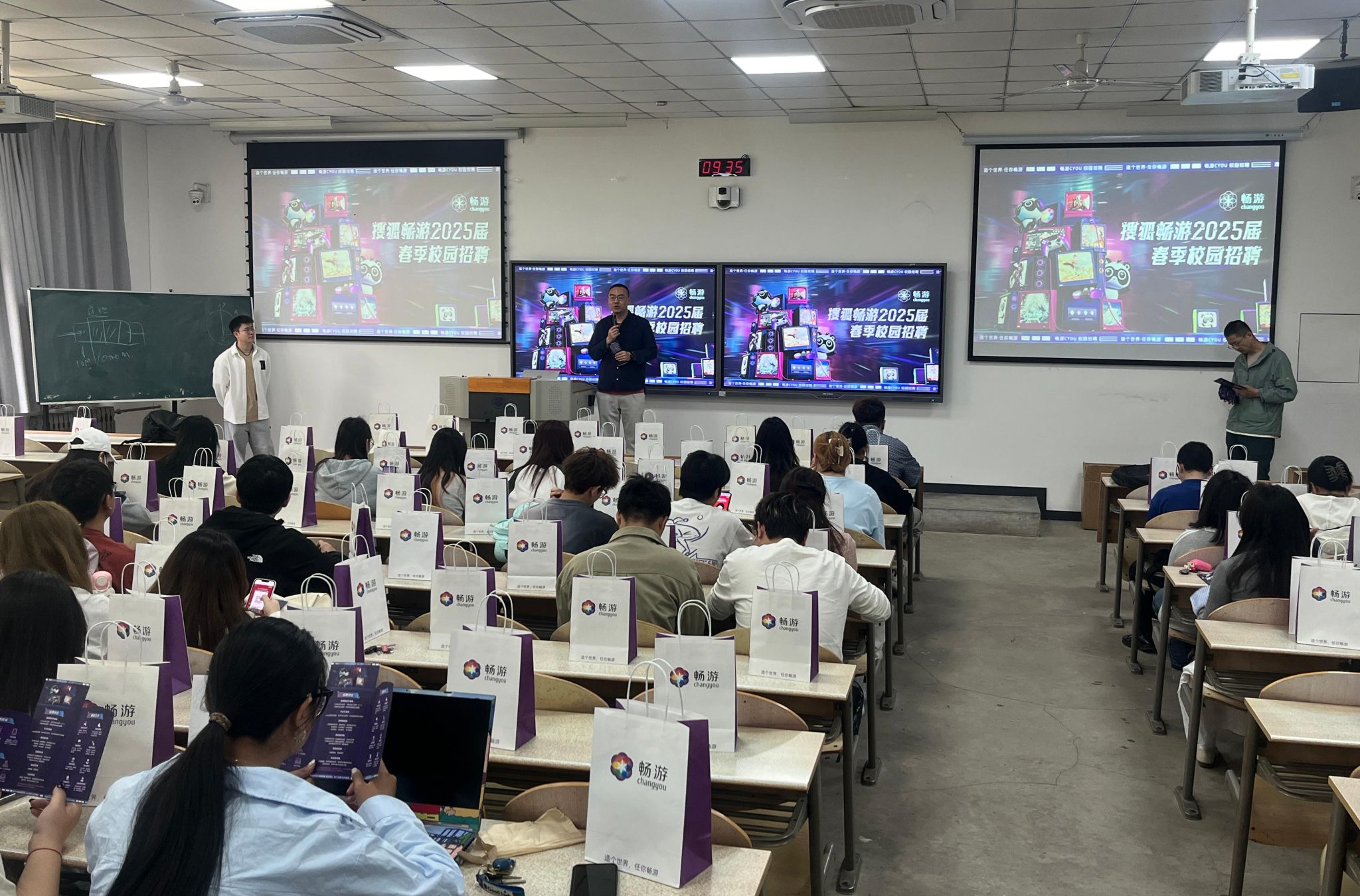 于振玺首先强调了实践对于数字媒体艺术专业学习的重要性,鼓励同学们珍惜机会,积极与企业交流,为未来的职业发展做好准备。随后,北京搜狐畅游有限公司HR袁旭能带来精彩分享。他为现场大二、大三学生详细介绍搜狐畅游实习项目,包括岗位设置、能力要求以及实习收获等内容;针对大四尚未就业的学生,袁旭能结合当下就业形势,分享企业招聘标准和实用求职技巧。互动环节中,学生们踊跃提问,袁旭能积极解答。