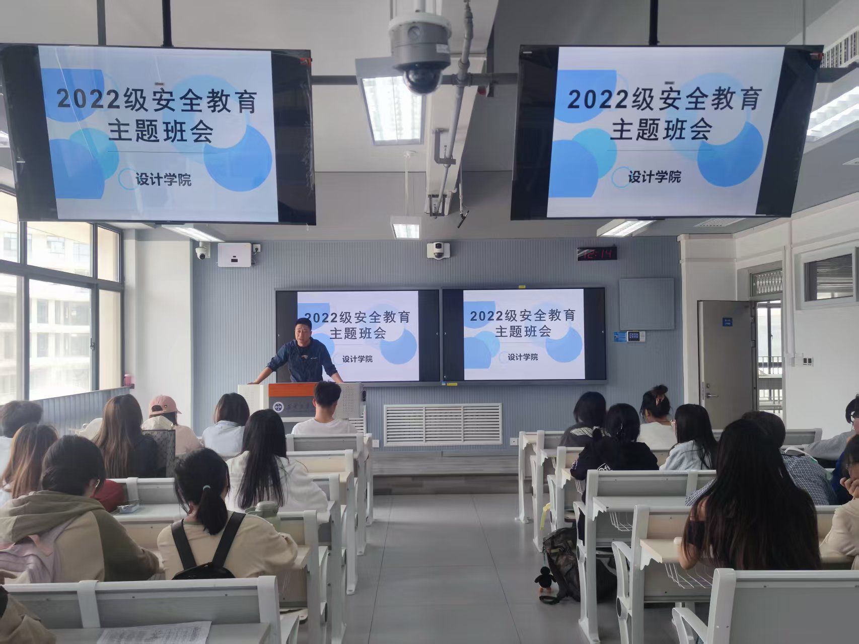 2022级在7-315、7-416教室先后召开节假日安全教育大会。辅导员洪涛主持,2022级全体学生参加。