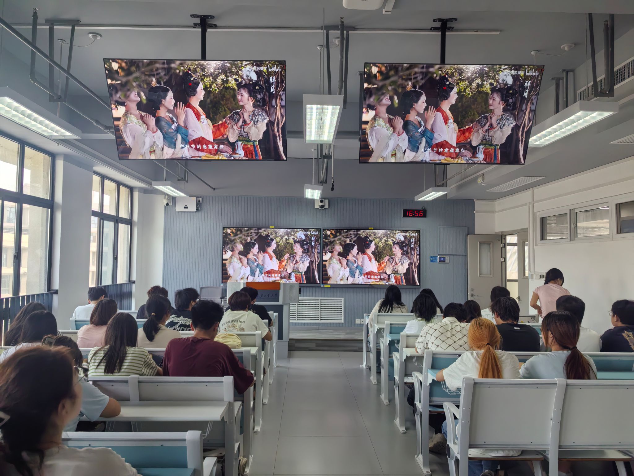 2024级于教7-416教室组织开展了中秋传统文化主题观影活动,共同观赏文化节目《中秋奇妙游》。