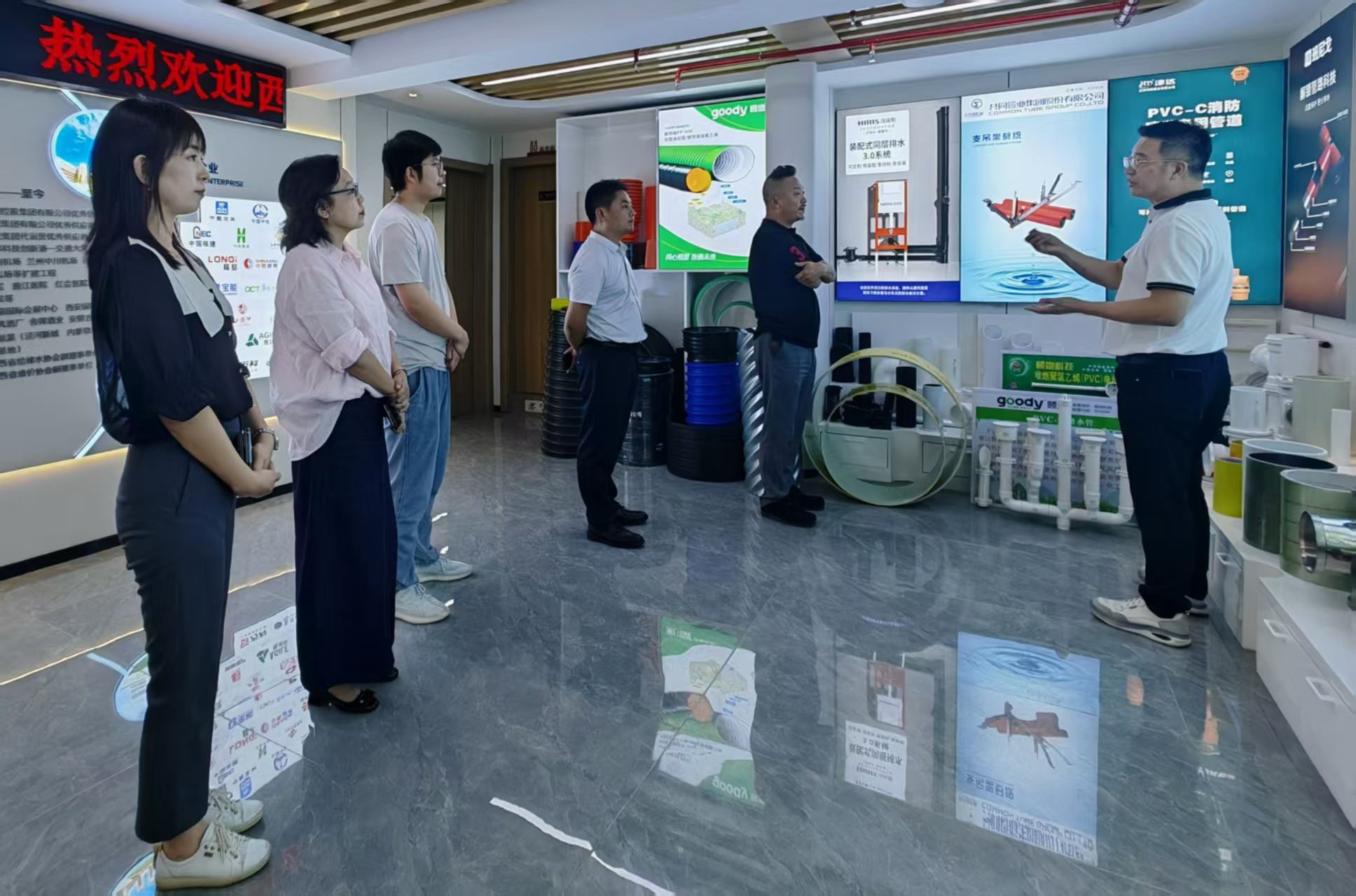 院长苏胜、党委副书记周倩、副院长刘萍一行前往陕西顾地智信安装设备有限公司开展访企拓岗活动。公司总经理彭光元、商务经理张晓辉、行政经理张朋宾、销售区经理周立、设计部经理柴艳云热情接待。