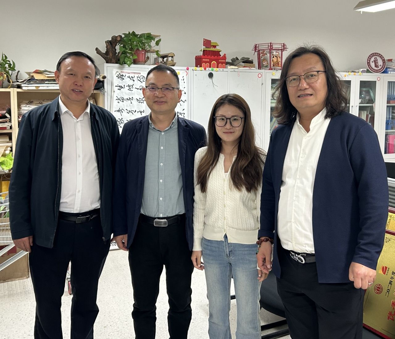 在高新区第四完全中学,校长董彩凤系统介绍了学校的办学理念与近年发展成效,着重分享了学校在弘扬中华优秀传统文化方面的实践与特色。副校长高学则围绕社团建设规划与美育工作推进情况作了具体说明。周著结合学院实际,介绍了学院的专业布局、陕西省非物质文化遗产研究基地的建设成果以及美育工作的实施进展。随后,双方围绕传统文化类社团教材开发、美育课程共建等项目进行了深入交流,并就人才需求与培养对接事宜交换了意见。交流期间,周著一行还专程看望了在此工作的学院毕业生王兆宇,关心询问其工作近况,并欢迎他为学弟学妹分享就业经验、传递职场心得。