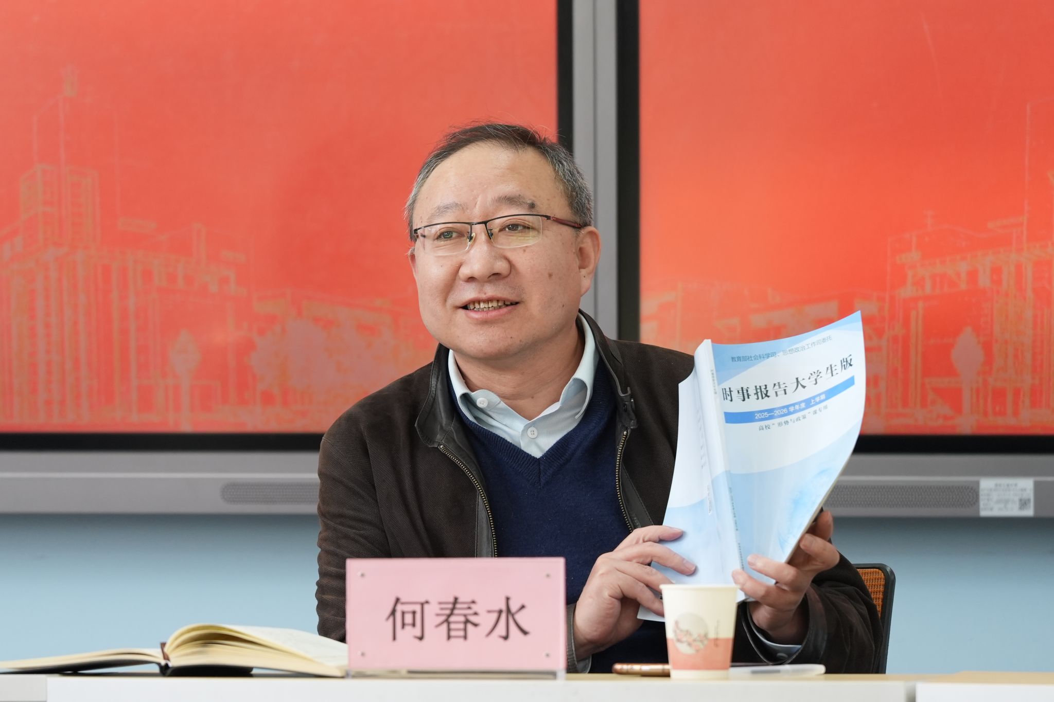 何春水在课程导言中讲到,值此全民族抗战胜利八十周年重要历史节点,重温抗战岁月、弘扬抗战精神,对引导广大青年树立正确历史观、民族观,涵养深沉家国情怀,成长为担当民族复兴大任的时代新人,具有深刻的现实意义与育人价值。授课中,何春水围绕“铭记历史 正义必胜”“民族壮举 浓墨重彩”“精神丰碑 永不磨灭”“珍爱和平 开创未来”四个部分进行阐述。他通过详实史料与生动案例,深刻解读了中国人民在危难关头所展现出的顽强意志与集体伟力,指出伟大抗战精神是中华民族宝贵的精神财富,必须代代传承、融入血脉。何春水进强调,抗战精神在新时代依然具有鲜明的引领价值,他鼓励师生从历史中汲取前行力量,将爱国主义情怀转化为脚踏实地、锐意进取的实际行动,坚定理想信念,勇担时代责任。