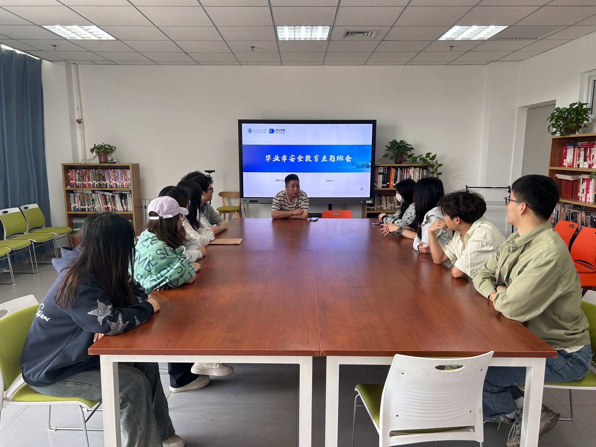 召开“荣校有我”2026届毕业生安全教育主题班会。班会围绕爱校荣校、文明离校、应聘安全、职业发展展开,辅导员洪涛细致讲解毕业流程、离校安全与注意事项,着重叮嘱学生在就业过程中谨防上当。
