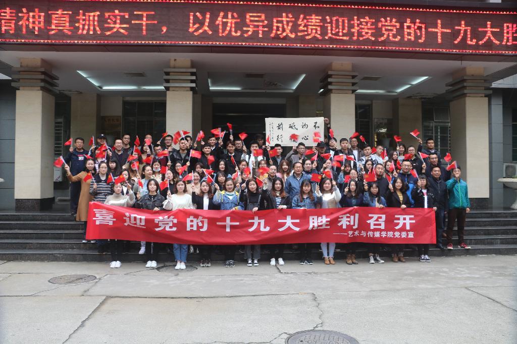 艺术与传媒学院师生,举行迎接党的十九大召开系列活动,在学院掀起迎庆十九大的热潮。