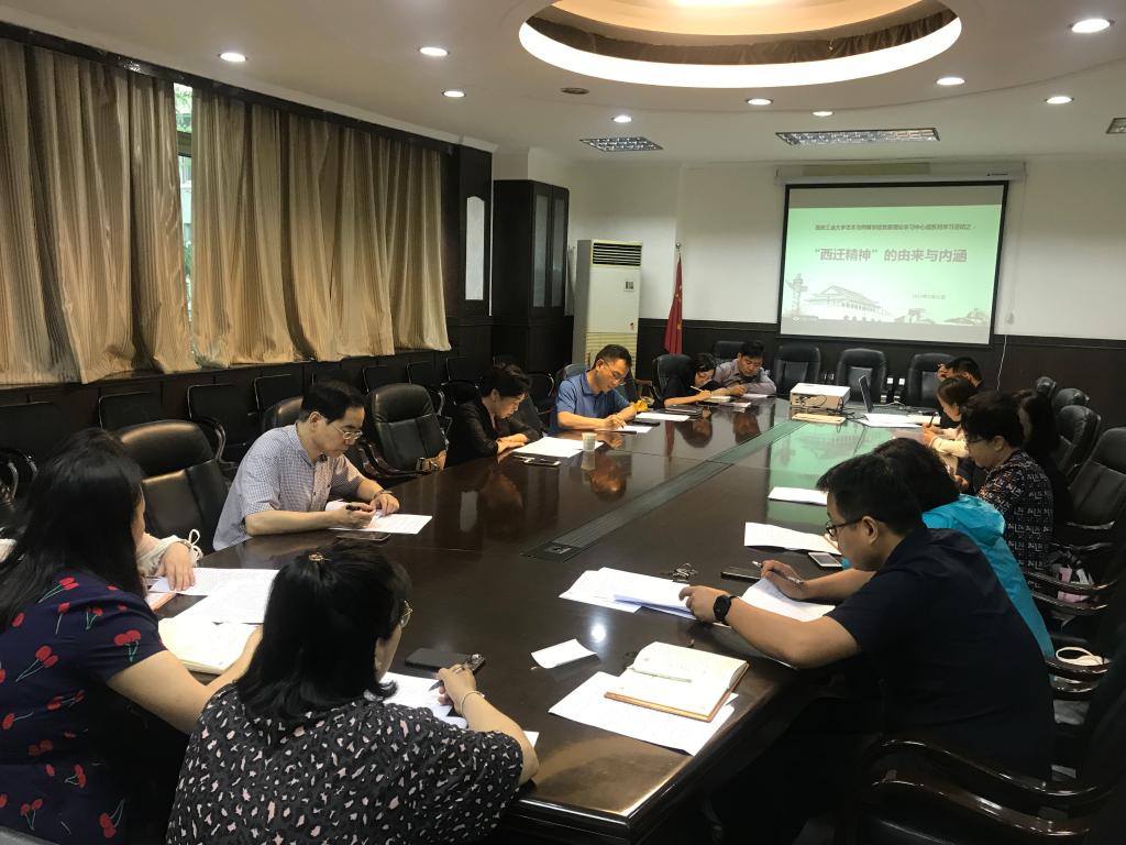 会上,周著带领大家学习了“西迁精神”的由来和内涵,重点学习了胸怀大局的担当精神、“艰苦创业”的拼搏精神、无私奉献的标杆精神、弘扬传统的创新精神的形成过程和重要意义;王若鸿带领大家学习了高等教育内涵式发展:从“推动”到“实现”,重点学习了实现高等教育内涵式发展“六个坚持”的具体内容。接着,大家结合学习内容和自己的工作谈了学习心得。校长雷亚萍在听取大家的发言后讲话指出:一是要坚持高等教育内涵式发展,坚持以学生为中心,更新观念,不断提高人才培养质量;二是学院要在学科建设上下功夫,要发扬“西迁精神”、积极打造具有学院特色的研究团队;三是抓好中心组专题学习的落实工作,凝心聚力共谋学院发展。