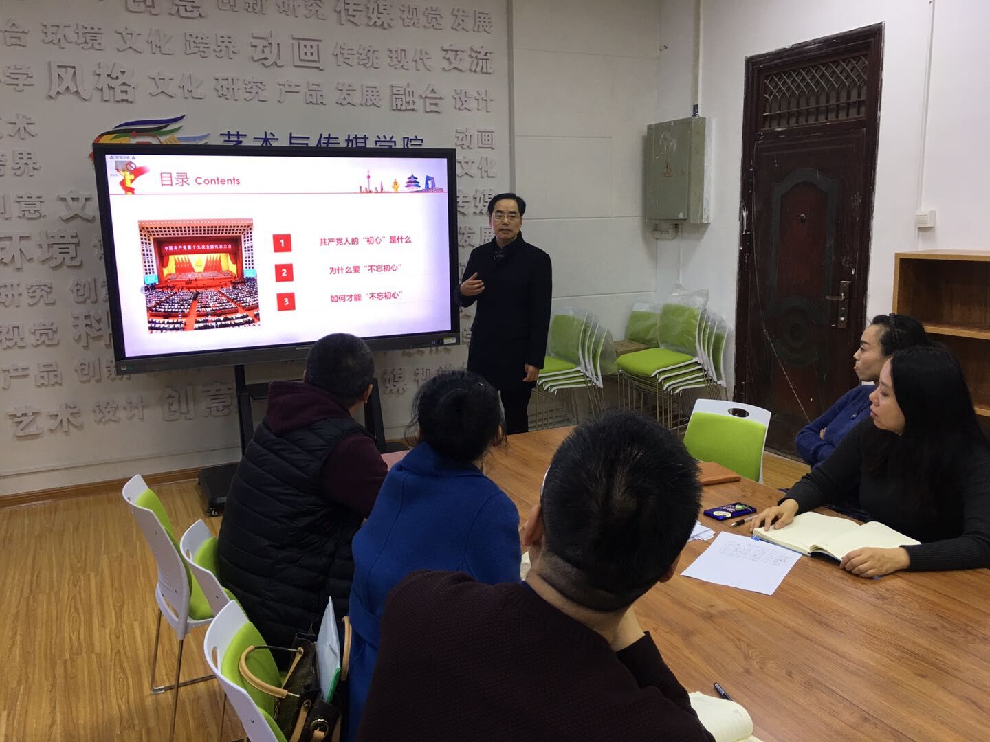2019年11月13日,按照学校“不忘初心、牢记使命”主题教育实施方案的要求,动画与视觉传达党支部书记王若鸿为本支部党员上了一次生动的党课。