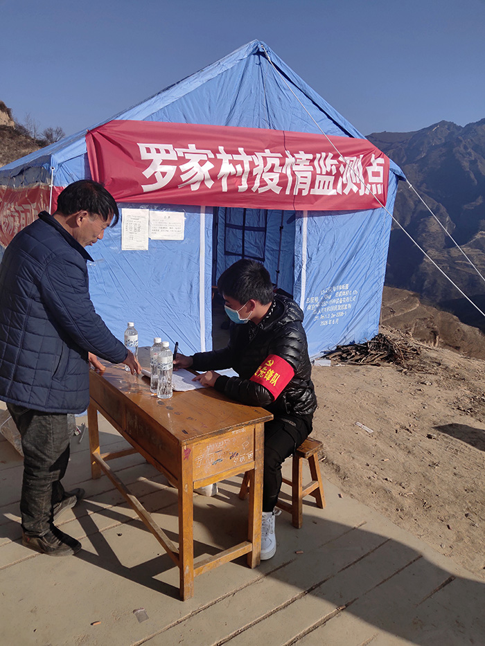 艺术与传媒学院学生第二党支部预备党员赵鹏瑞,积极响应当地党组织号召,在老家甘肃省陇南市武都区玉皇乡罗家村,主动配合村党支部做好疫情防控工作。1月28日至今,每天坚持准时到村口疫情监测点值守,排查返乡人员详细信息,劝返外村往来人员,并积极参与村庄以及道路巷道消毒工作。