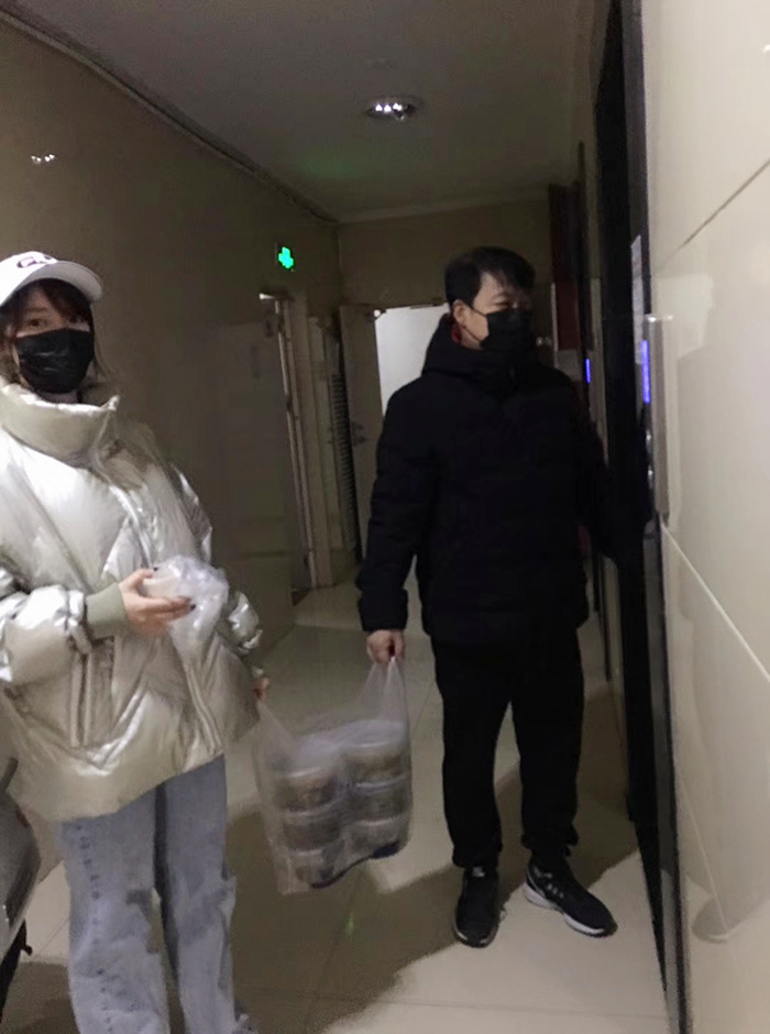 艺术与传媒学院学生第三党支部入党积极分子贾春晓,2月14日早上起来寒潮来袭,贾春晓看着窗户外安保忙碌的身影,也想尽自己的微薄之力帮个忙,于是就和家人一起亲自下厨做好饭菜,和父亲一起为小区保安送上了热腾腾的饭菜。贾春晓说:防控疫情人人有责,小区保安为了大家的健康平安辛勤工作,他们应该得到我们的关心和支持。