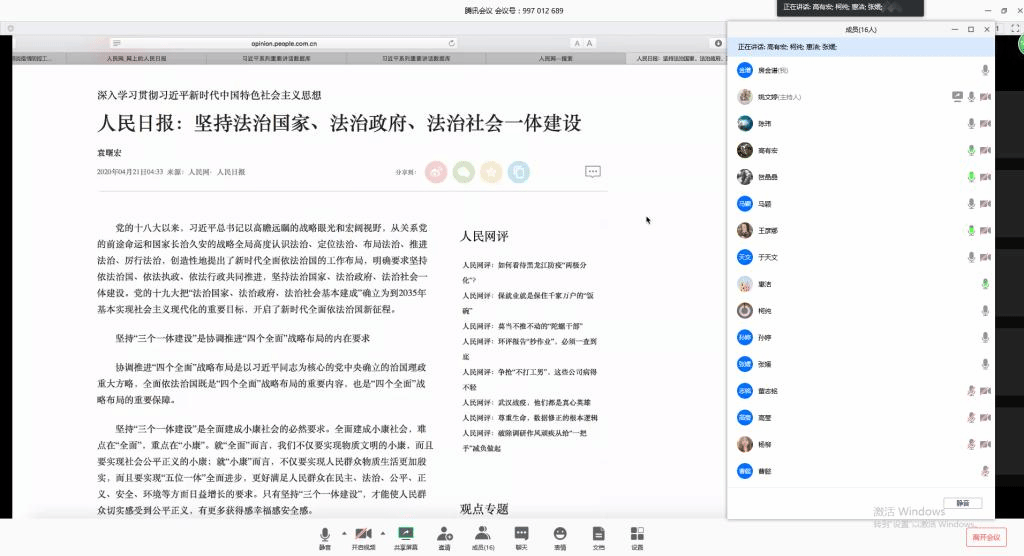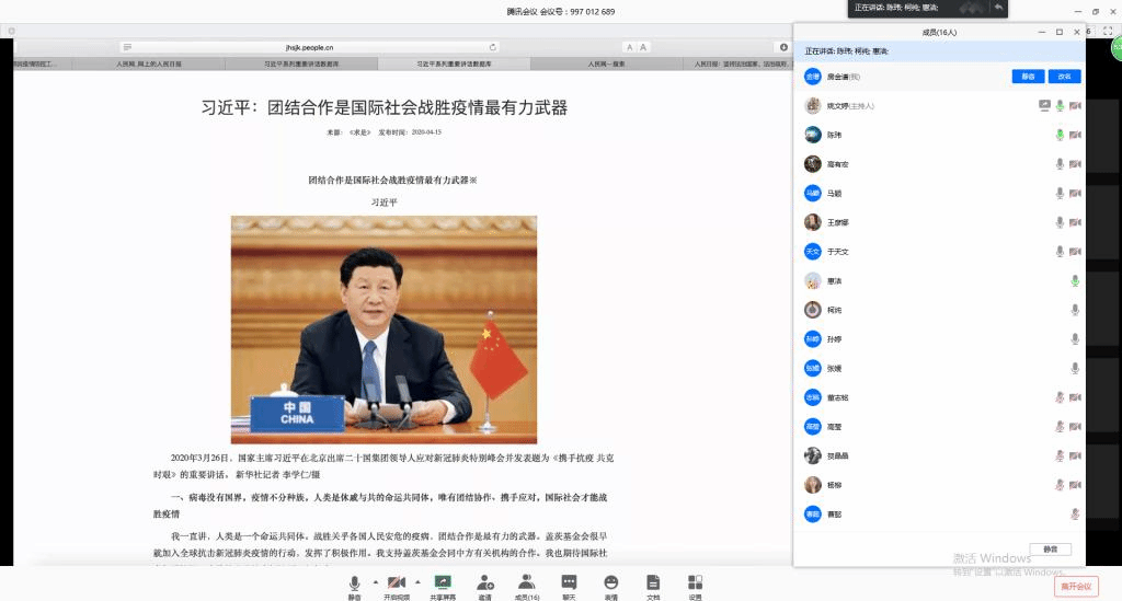4月23日,按照《色情游戏 2020年上半年教师政治理论学习计划》要求,视觉传达设计系利用腾讯会议平台召开了政治理论线上学习会,会议由系主任姚文婷主持,院党委委员、院长王若鸿列席,全系教师参加了学习活动。姚文婷首先领学了“团结合作是国际社会战胜疫情最有力武器”和“坚持法制国家、法治政府、法治社会一体建设”等两个重要讲话;随后,大家就学习感受进行了交流。