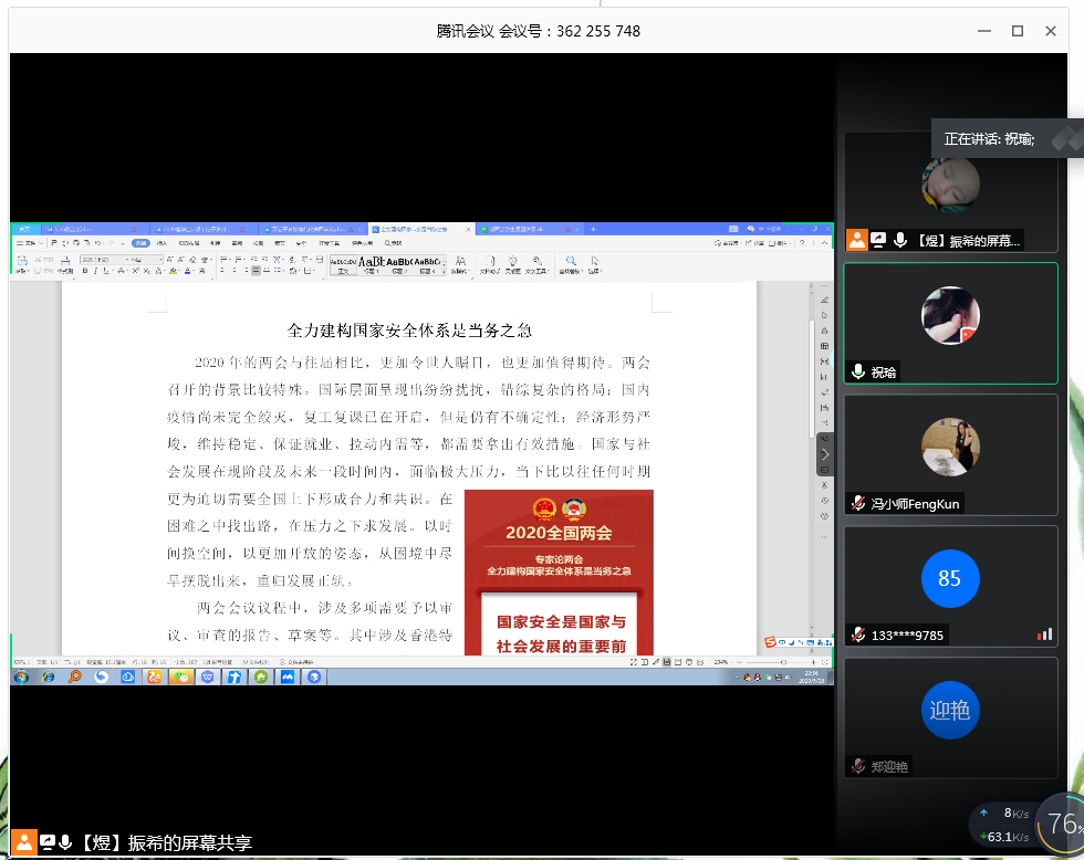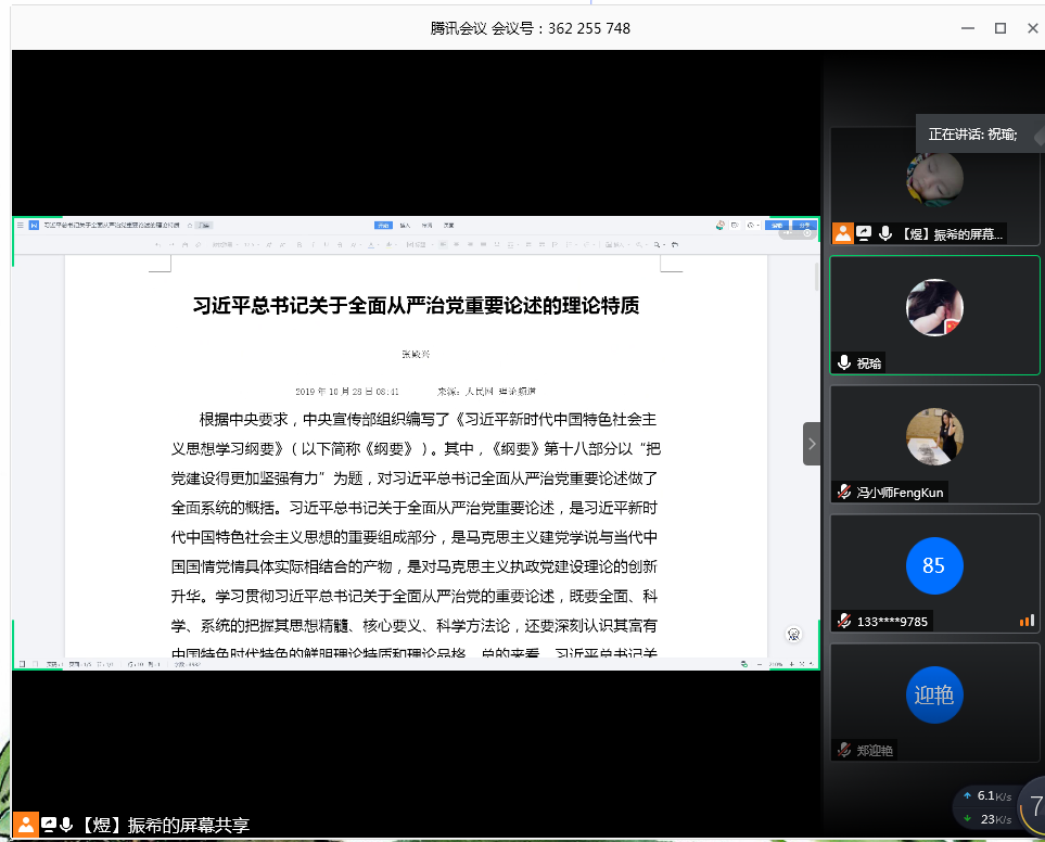 2020年上半年教师政治理论学习计划》要求,数字媒体艺术系通过腾讯会议平台召开了政治理论线上学习会。