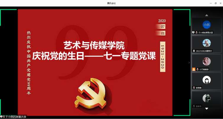 艺术与传媒学院研究生党支部在支部书记丁西蓓老师的带领下,通过视频会议的方式庆祝党的生日开展七一专题党课。