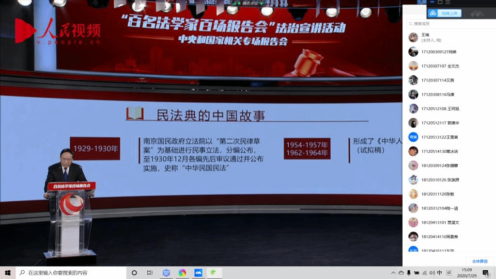 7月29日下午,艺术与传媒学院第一党支部利用主题党日活动时间,组织全体党员进行线上集中学习,本次学习主要内容为“百名法学家百场报告会”和《中华人民共和国民法典》(以下简称民法典)。