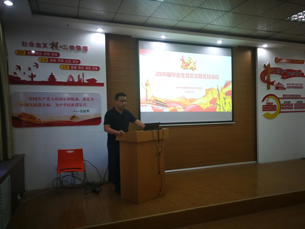 为了加强对毕业生党员的教育,教育引导全体毕业生党员继续在工作实践中树好旗帜,2020年7月19日,艺术与传媒学院学生第三党支部开展毕业生党员主题党日活动,学院党委委员、学生第三党支部书记张晓宾主持活动,学生第三党支部28名毕业生党员参加了活动。