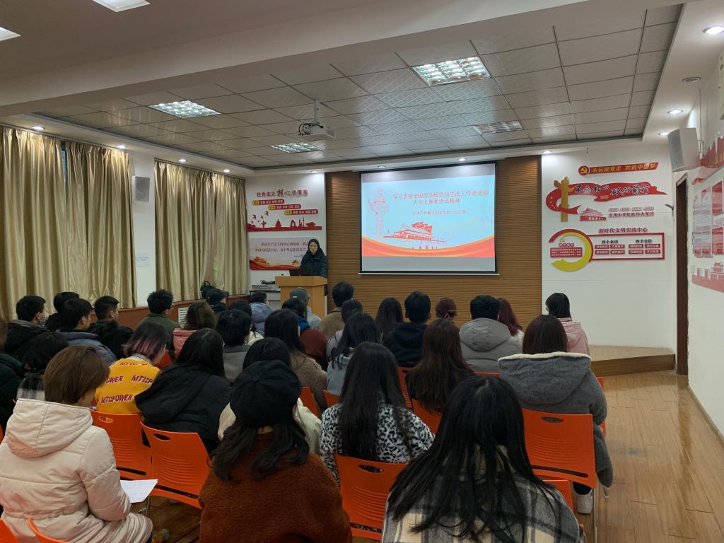 12月2日,艺术与传媒学院学生第一党支部在金花校区教2-306组织学习习近平总书记在全国劳动模范和先进工作者表彰大会上的重要讲话,支部书记孙雅茹主持,学生第一党支部全体学生党员参加此次学习。