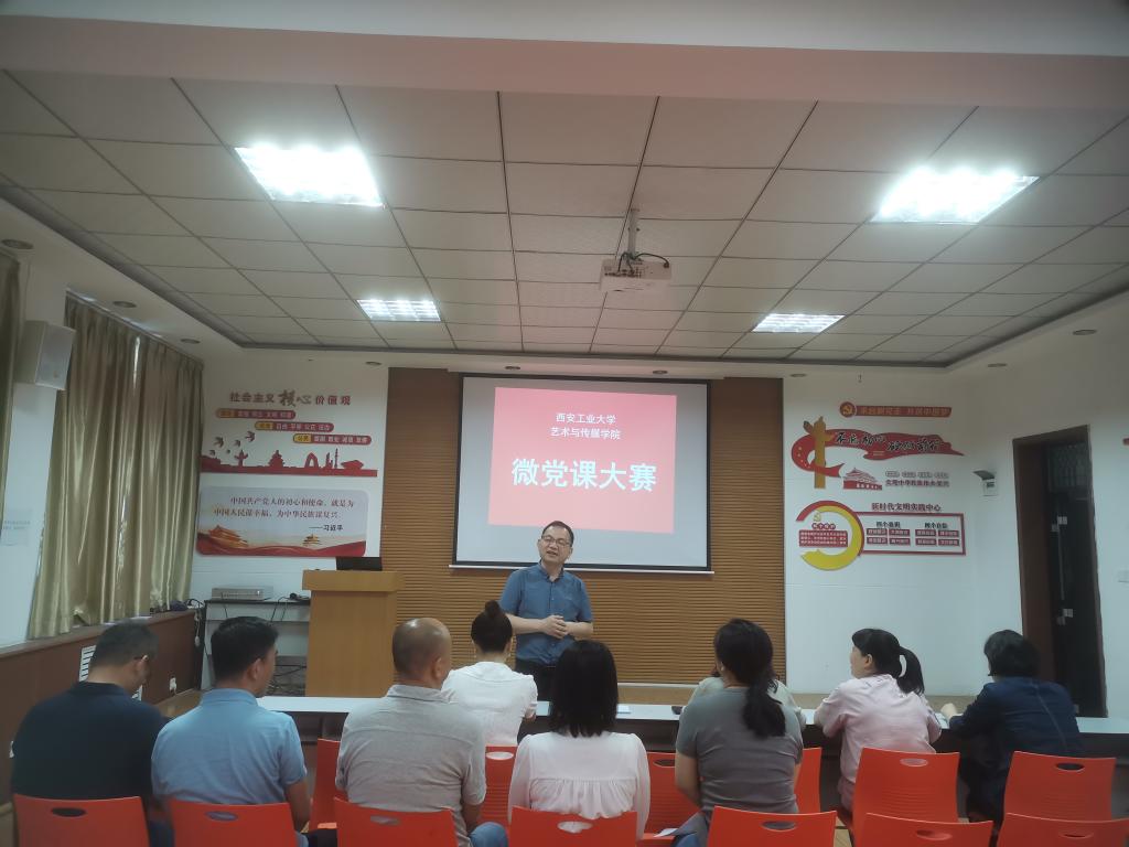 为庆祝中国共产党成立100周年,深入开展党史学习教育,不断增强教师党员理论素养,2021年5月13日,艺术与传媒学院党委举办党史学习教育微党课大赛,比赛由党委委员张媛主持,学院党委书记周著、学院党委委员副院长刘萍出席,师生党支部推选的5名教师党员和各支部党员代表参加了大赛。