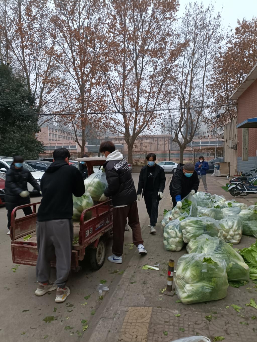 1月6日下午,学院临时党支部开展志愿服务活动,协助后勤工作人员搬运四川巴中援助蔬菜物资。活动由支部书记洪涛和张秀丽组织,11公寓、1公寓党小组全体成员及其他师生志愿者参加。
