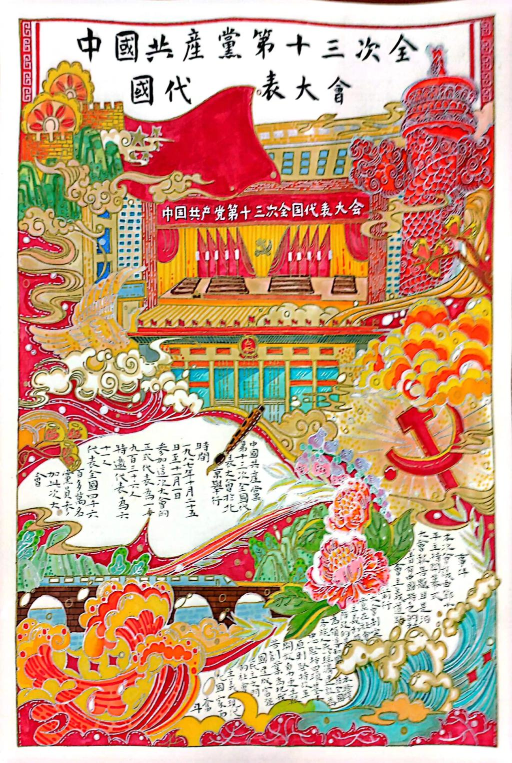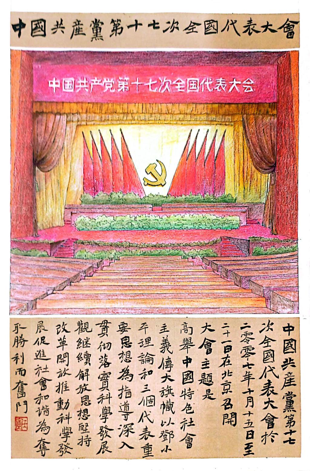 此次活动为期一个月,共有19个小组展开了主题绘画书法实践。在创作过程中,同学们充分发挥专业优势,艺术与传媒学院学生对历届大会会址进行了手绘展示,中国书法学院学生对大会召开的时间、地点、主要贡献等进行了中国书法形式的展示。通过主题绘画书法实践,加强了同学们对党史的深入理解。