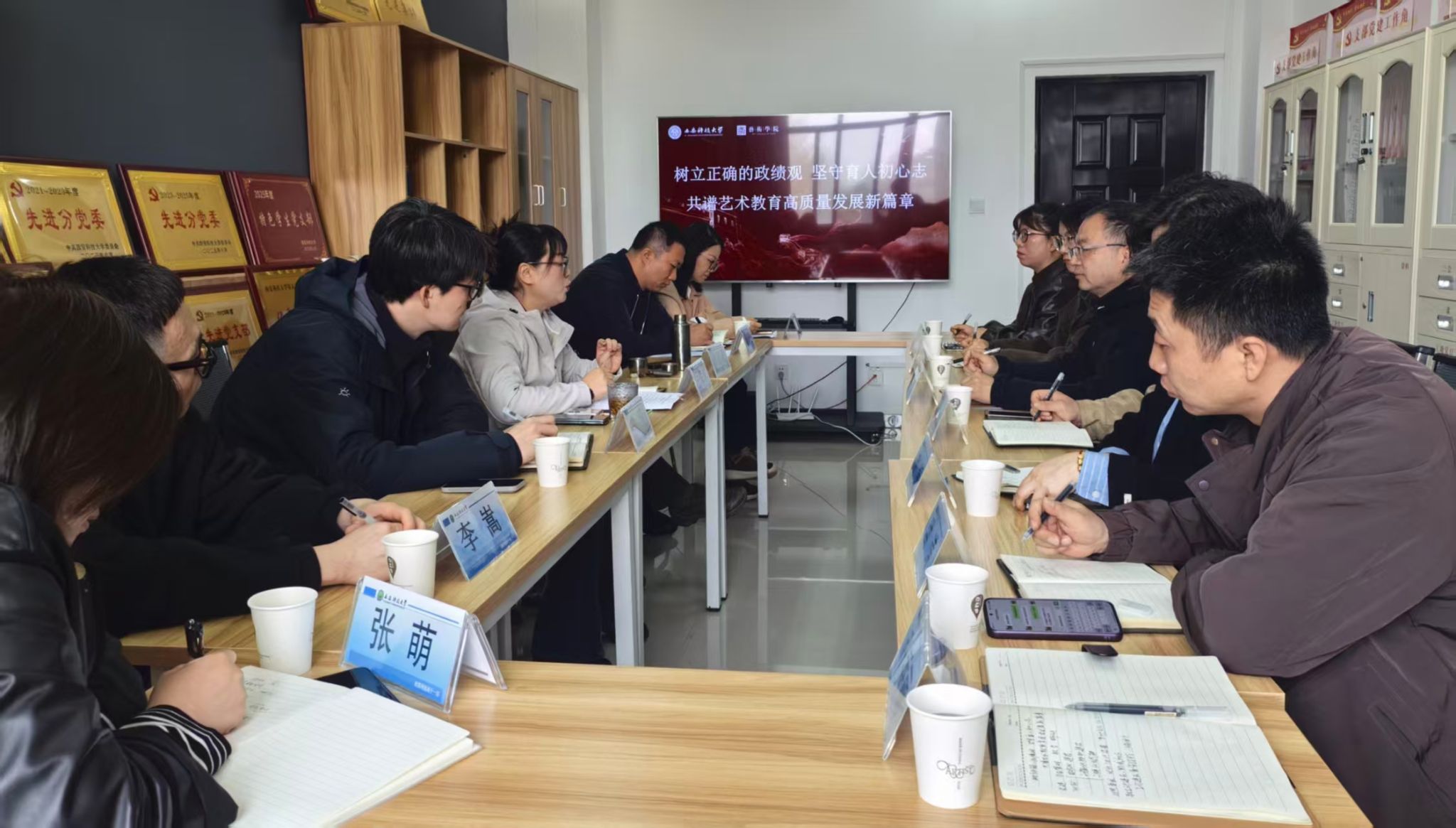 党委书记周著一行七人赴西安科技大学艺术学院调研交流,西安科技大学艺术学院党委书记岳海华、院长杨惠珺、副院长冯青及各党支部书记代表热情接待了调研组一行,并参与座谈。