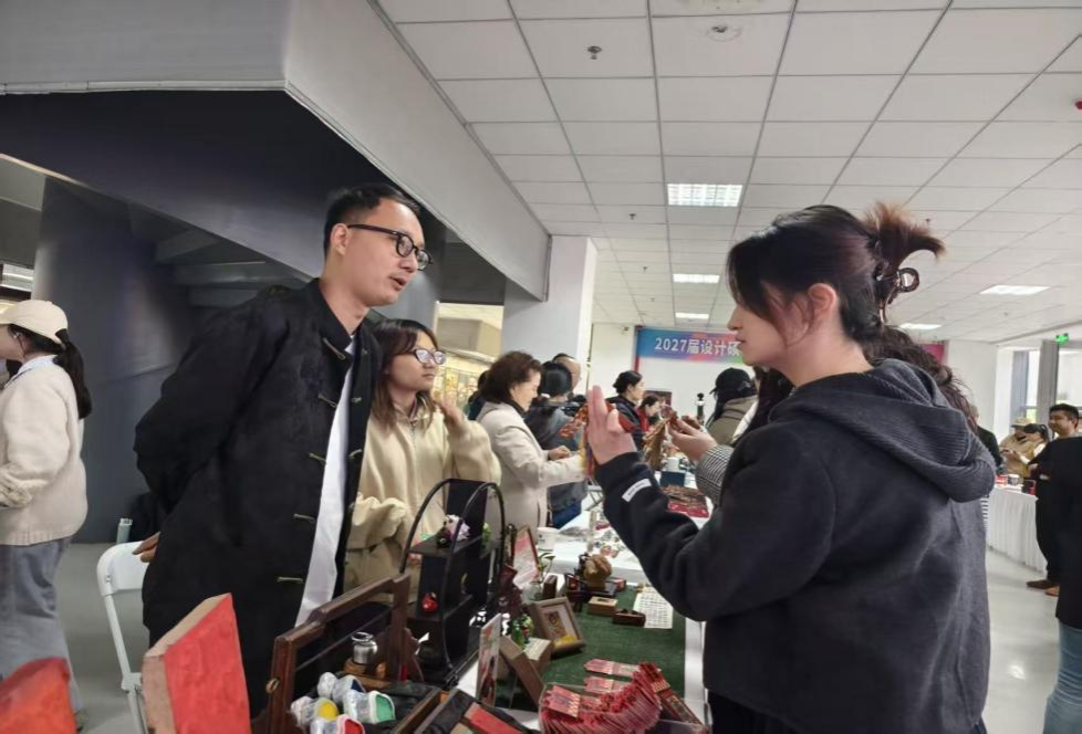 本次活动以“匠心・新韵”为主题,聚焦非遗活化与军工文化的创新融合,探索美育文创的实践路径。会上,支部党员与非遗传承人面对面交流互动,深入探讨非遗元素与军工精神的文创转化路径,近距离感受匠心技艺的魅力;研讨环节中,党员们围绕非遗技艺的现代表达、军工文化的文创转化、设计服务地方文化建设等议题各抒己见,探讨如何将传统非遗元素、军工精神与当代设计语言相结合,打造兼具文化内涵与时代价值的文创作品。支部党员周佳阅表示,此次研讨为专业学习提供了新的思路,未来将立足学科特色,以设计为桥梁,推动非遗文化与军工文化的传承创新。