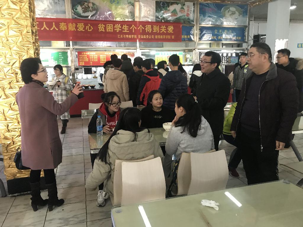特举办“贫困学生个个得到关爱,教职工人人奉献爱心”冬至送温暖活动。此次活动由劳动服务公司、继续教育学院与艺术与传媒学院联合举办。艺术与传媒学院王若鸿院长、金娜副书记、周著副院长,劳动服务公司白震平经理、继续教育学院洪波院长参加了本次活动。