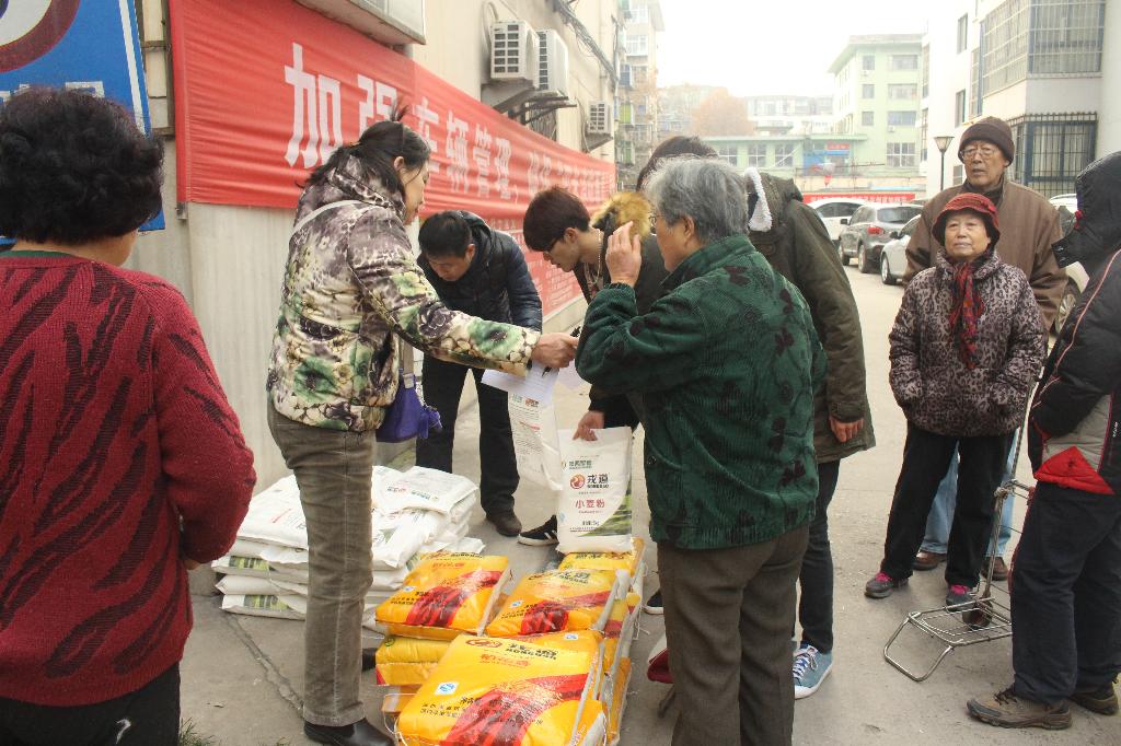 艺术与传媒学院近200名大学生志愿者协助校工会和离退办,帮助年事已高的退休教职工将年终福利米、面、油等搬到家中。