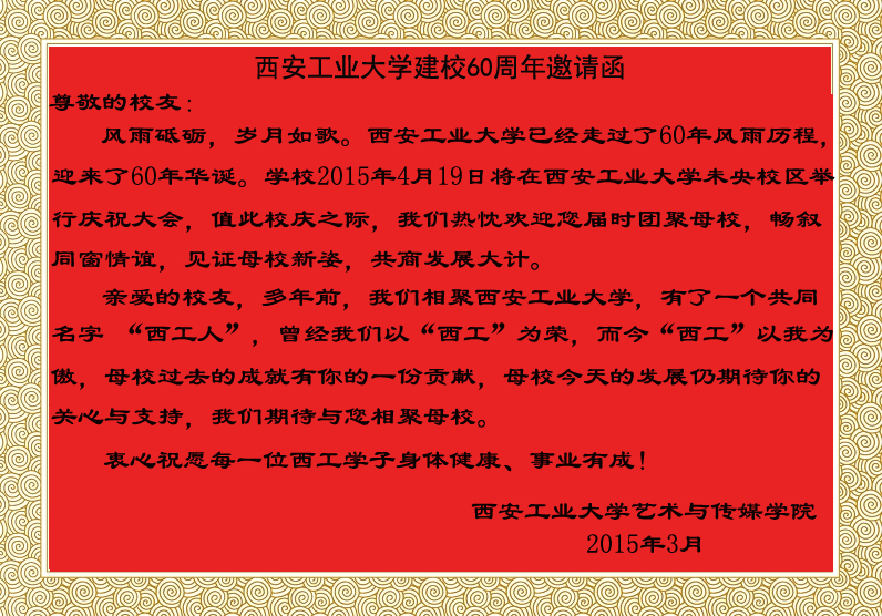发展的海内外校友、教育行业和兵工行业同仁以及各界朋友拨冗莅校,共谋学校发展大计,共谱西安工大新篇章!