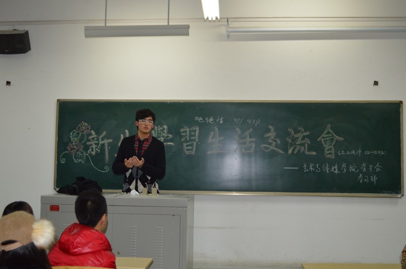 艺术与传媒学院视觉传达设计系由黄小宇,刘宇松主讲;环境艺术设计系由李广一,樊若男、由马昂,许森主讲;工业设计系由施德楼,郭昱武主讲;书法系由李美烨,邵子枫主讲;动画系由何正东,王婷主讲。会议分为三个部分,首先大二同学们向大家介绍了一些关于专业学习和就业前景等方面的问题,并以自己的亲身经历来让大家了解自己所学习的专业。随后,学姐、学长们还向大家提出了许多关于学习、生活方面的建议:1、探索性的接受新的知识;2、多看书充实自己的生活;3、制定具体的学习方法并多和同学,老师交流总结经验;4、注重英语,专业课的学习等。另外,大二学生还根据各个专业的不同提出了关于软件运用的良好建议。互动环节,大二同学解答了前期收集到同学们所反映的问题,接着就所共同关心的问题进行了交流。