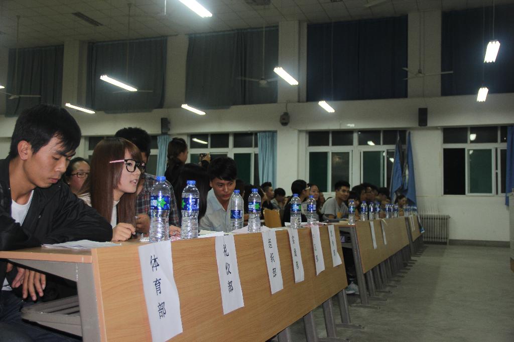 活动开始,学生会各部部长对过去一年工作的进行了总结与答辩。他们简洁明了地阐明了学生会各部存在的意义与职责。接下来,主持人宣读了学生会纳新流程与注意事项,2013级的同学们依次上台进行竞聘演讲。有些竞选者虽然略显紧张,但是仍然能够沉着应答,体现了他们良好的心理素质与应变能力。在竞选过程中,同学们表达着自己加入学生会的强烈意愿,有的同学希望在学生会能够更好地提升自己的能力;有的希望通过学生会结识更多新的朋友;有的希望借着学生会能够更好地服务同学,每一位同学都深深表现出加入学生会的决心与热情。各部门的评委们也本着公平、公正、公开的原则,对竞聘者提出切合实际的问题,认真负责地落实了对竞聘者综合素质的评定和入会的严格把关。最后,在团委书记张晓宾老师的总结下,纳新大会圆满结束。