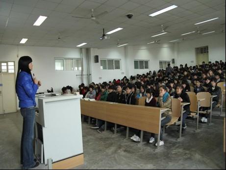 刘老师结合自己的大学经历对“如何读大学”这一话题展开了阐述和讨论,并现场请同学们配合做了一份关于适应能力的调查测试,然后就“怎样度过大学四年”这一问题,分别从学习、生活、职业等方面作出了具体阐述:学习上应找到学习的乐趣;生活上应学会独立生活;职业上应脚踏实地,不重复别人的成功。