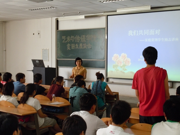 贫困生工作,更好地为贫困生服务,5月12日,艺术学院于教B205召开主题为“我们共同面对”的贫困学生励志座谈会。会议由院总支书记曹玉玲主持,全体贫困学生和辅导员参加了此次座谈。