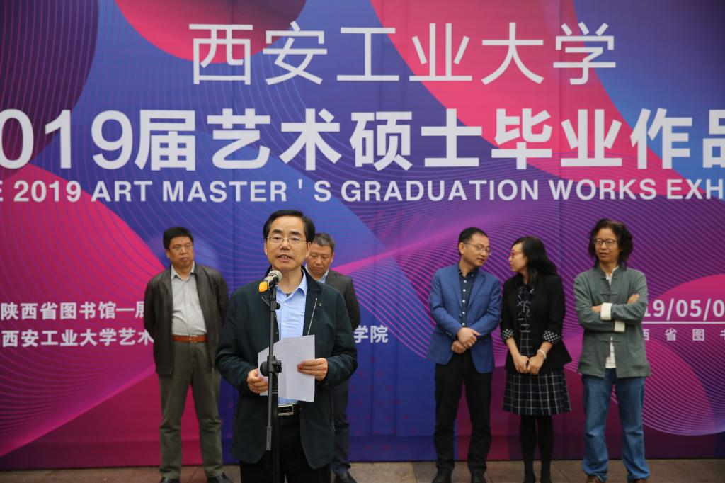 艺术与传媒学院2019届艺术硕士毕业作品展在陕西省图书馆展厅隆重举行。学院党委书记周著、院长王若鸿、副院长刘萍及学院师生代表100余人参加开幕仪式。开幕式由艺术与传媒学院副院长苏胜主持。