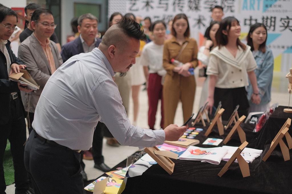 艺术与传媒学院2017级艺术硕士中期实践展在金花校区图书馆展厅开展。学院党委书记周著、院长王若鸿及学院师生代表100余人参加开幕仪式。开幕式由艺术与传媒学院副院长苏胜主持。