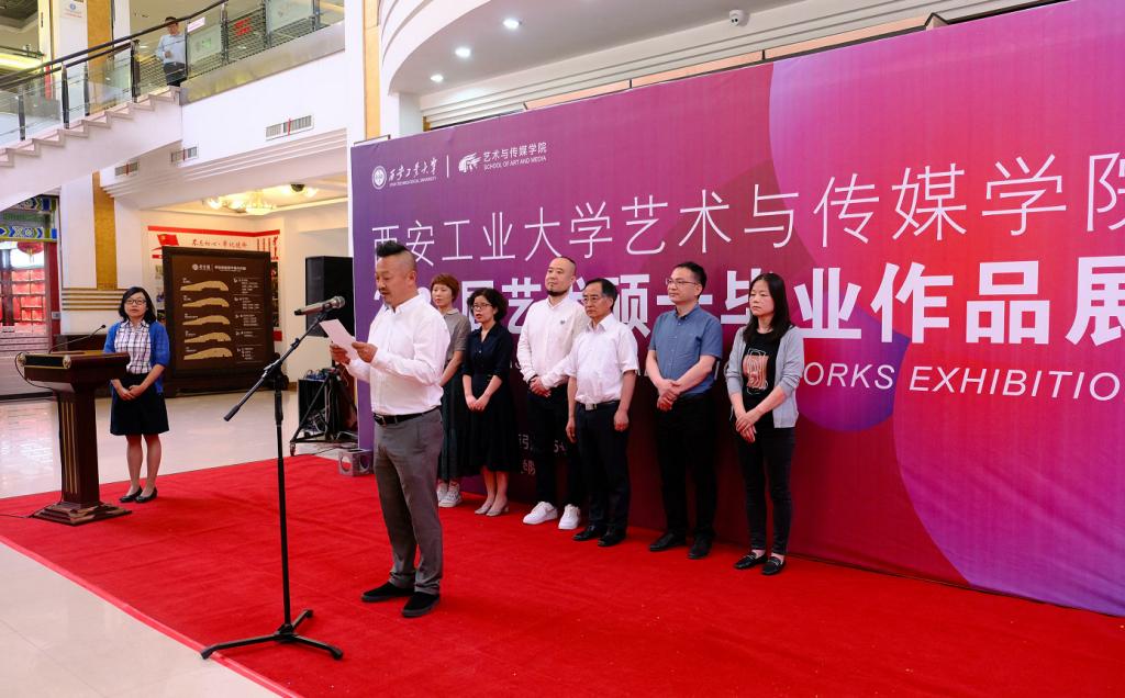 开幕式上,院长苏胜介绍了本次展览的基本情况,对全体毕业生三年来的学习成果给予了充分的肯定。希望同学们能够保持历久弥新的专业热情,带着对学习的求知若渴,在新的阶段,继续弘扬了我校"忠诚进取,精工博艺"的校风,彰显艺术与传媒学院学子的风采,踏上新的征程,走向远方。