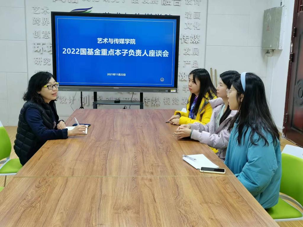 11月22日下午,艺术与传媒学院在教二楼J2-202会议室召开了2022国基金重点本子负责人座谈会,会议由副院长刘萍主持,张婧、房丹、王晶三位重点本子申报负责人参加了本次座谈会。