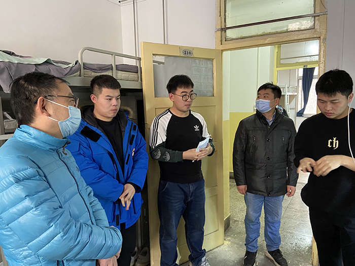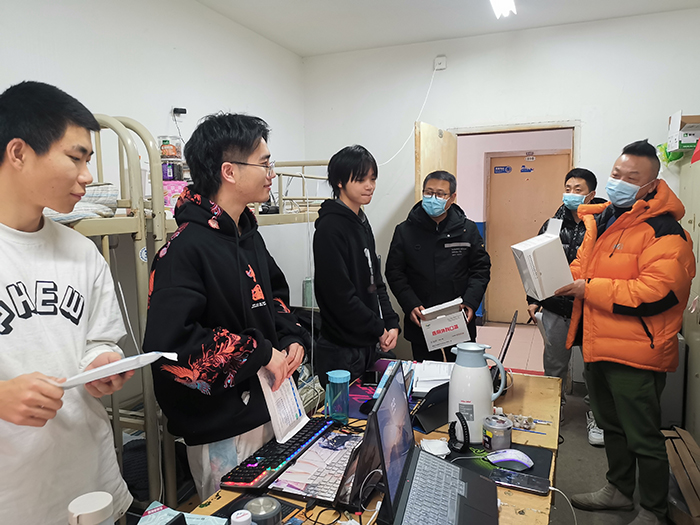 走访过程中,学院领导首先代表学院为同学们分发了防疫物资,叮嘱同学们做好个人防护,注意保暖,严格遵守学校疫情防控要求,做好健康监测和日常打卡工作,要保持宿舍卫生,勤通风。接着,各位院领导详细了解了同学们线上学习情况,征询了同学们关于学习的意见和建议,了解和掌握了同学们在封闭管理期间的生活需求,并向同学们介绍了学校和学院有关疫情防控的具体安排,叮嘱同学们安心学习,有什么困难第一时间向学院反馈,学院领导和学工干部24小时在岗,随时为大家提供帮助。走访结束后,全体院领导一同慰问了因感冒发烧正在11公寓隔离的三名同学,向同学们分发了抗疫物资和水果,叮嘱同学们积极配合学校相关工作安排,照顾好自己,保持跟辅导员和同学的联系,有任何需求第一时间告知,学院会与大家并肩战胜疫情、渡过难关。