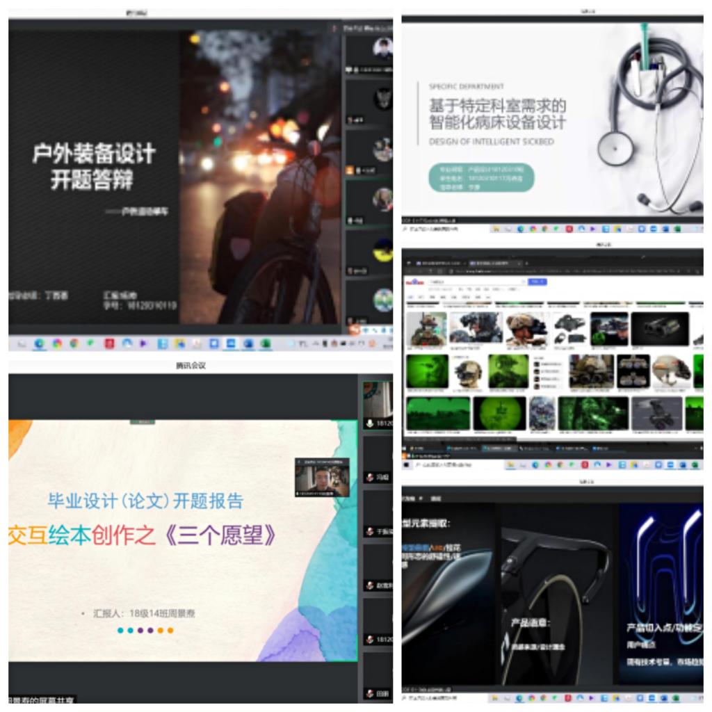 此次答辩按专业分为四个小组,视觉传达设计组、环境设计组、产品设计组和动画组。每个答辩小组由一位组长、五位答辩成员、一位秘书组成。每个组按照指导教师的数量抽取23%至35%不等比例的学生参加线上答辩,其他学生以审阅开题报告的形式进行开题。