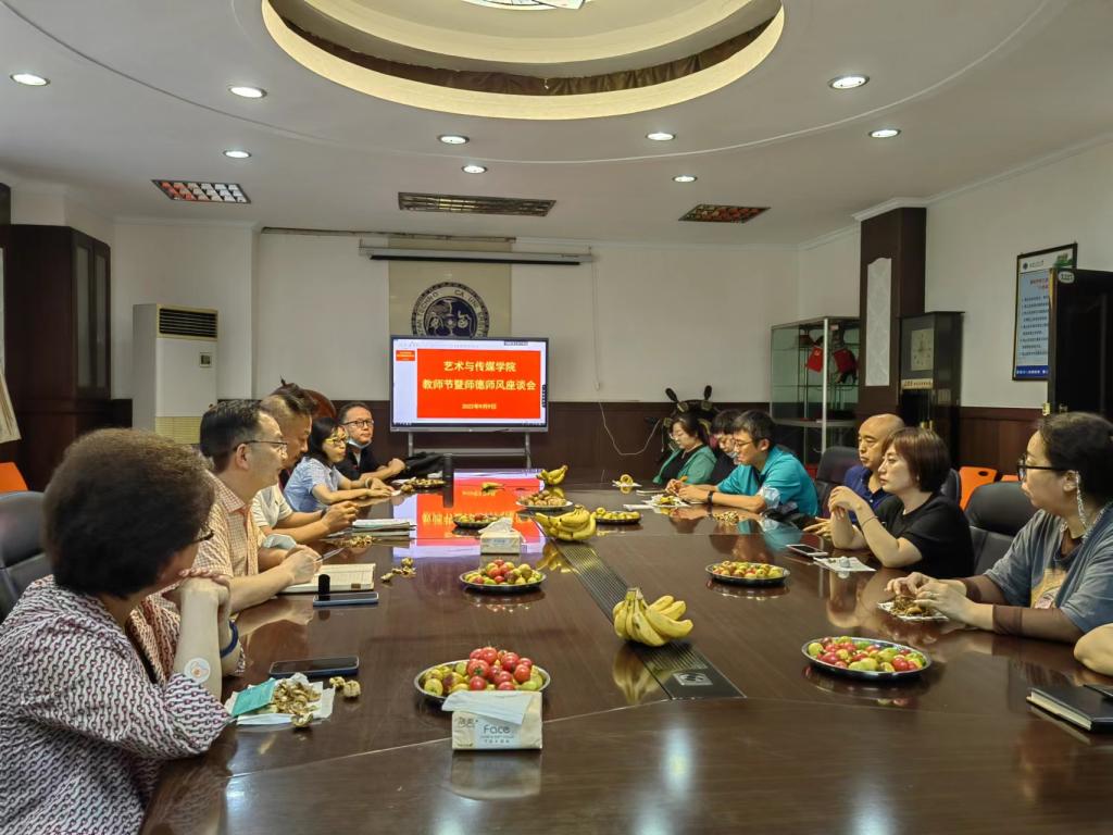 在第38个教师节来临之际,艺术与传媒学院于9月9日下午4:00,在金花校区召开了教师节暨师德师风座谈会,学院班子成员、各系系主任、教师代表、辅导员代表、办公室代表、无党派代表21位老师参与了座谈会。