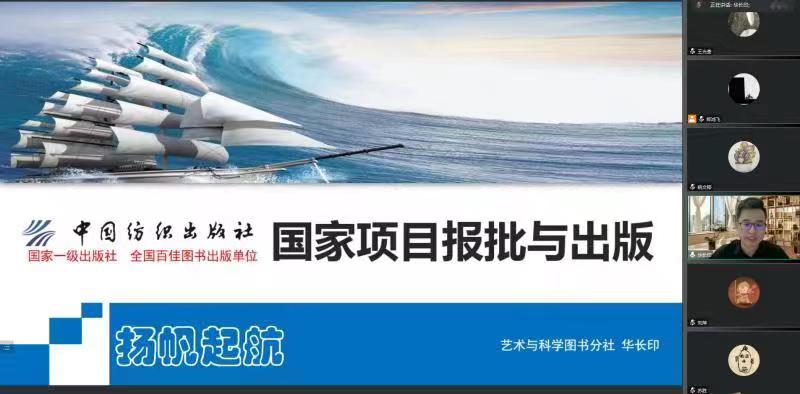 邀请到中国纺织出版社艺术与科学图书分社社长、中国工艺美术学会理论专业委员会副主任华长印,在腾讯会议线上带来了题为“国家项目报批与出版”的专题讲座。院长苏胜、副院长刘萍、姚文婷以及学院七十余名教师参加了本次讲座。讲座由副院长刘萍主持。