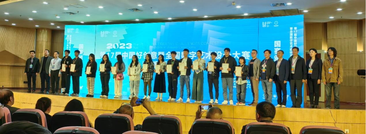 “中国好创意暨全国数字艺术设计大赛”是中国高等教育学会发布的《2023全国普通高校学科竞赛排行榜》赛事之一,是国家级A类学科竞赛赛事。在此次大赛中,学校、学院精心组织,并通过指导老师的精心指导、校内选拔推荐,以及省、国赛评选,我校师生创作的18组作品获得国赛等级奖,其中本科生组获国赛一等奖3项,二等奖1项,三等奖8项;研究生组获国赛二等奖2项、三等奖2项;教师组荣获国赛二等奖1项、三等奖1项。19组作品获省赛奖项,其中省赛一等奖6项;二等奖4项;三等奖9项。我校在本届大赛中荣获国赛优秀组织奖。