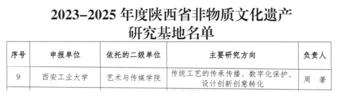 最终获批2023-2025年度陕西省非物质文化遗产研究基地。