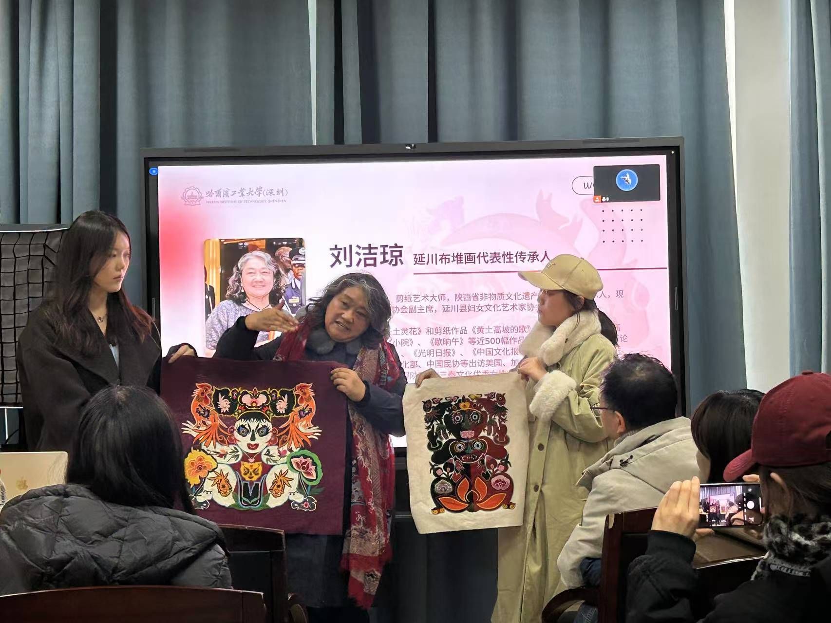 随后,延川布堆画非遗传承人刘洁琼为与会者带来了“非遗之美—延川布堆画”为主题的精彩讲座,详细讲解了“张合”文化是如何孕育独特布堆画作品的,并展示了抓鸡娃娃、财神爷等布堆画作品。刘洁琼指出,布堆画来源于生活,是民间语言在布艺上的生动展现,蕴含着生生不息的文化内涵。