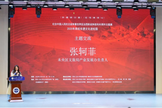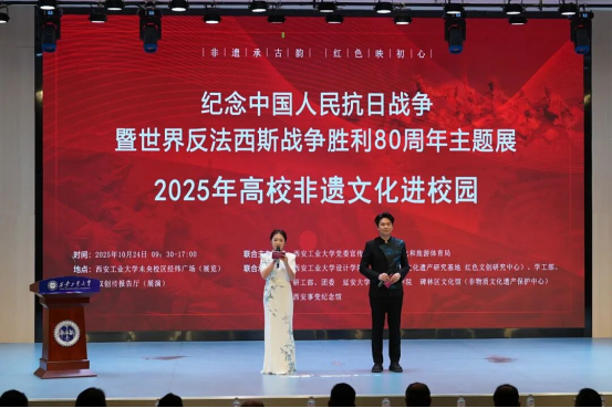 10月24日,由学院(陕西省非物质文化遗产研究基地、红色文创研究中心)联合承办的非遗文化进校园活动和纪念中国人民抗日战争暨世界反法西斯战争胜利80周年主题展在未央校区举行,来自政府机构、高校、企业及非遗传承领域的众多嘉宾参加此次活动。