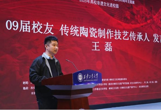 2009届校友,传统陶瓷制作技艺传承人王磊分享自己在非遗传承道路上的经验与感悟。