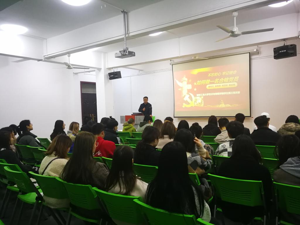 2019年11月13日,按照学校“不忘初心、牢记使命”主题教育实施方案的要求,艺术与传媒学院学生第三党支部书记张晓宾为本支部全体学生党员和发展对象讲党课,本次党课的主题是“如何做一名合格党员”。