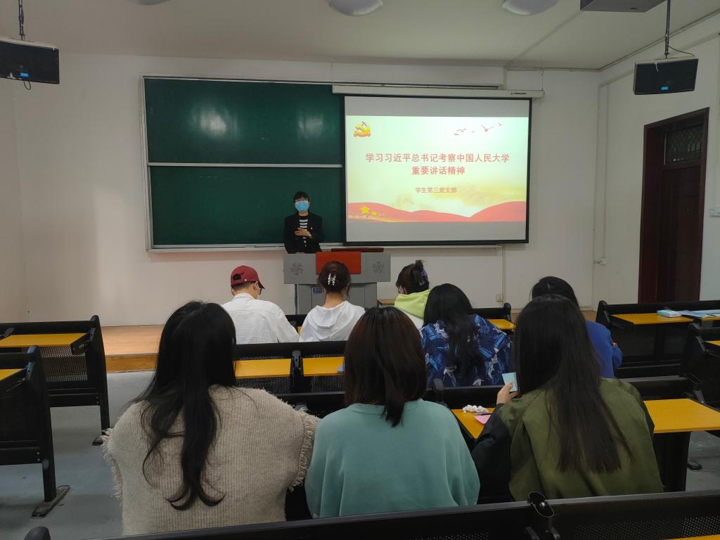 4月28日,学生第三党支部组织学习了习近平总书记在中国人民大学考察时的重要讲话,支部书记杨娜娜主持。